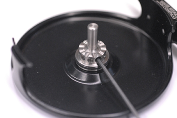 Step 1: Carefully separate the spool from the reel body by grasping the top and bottom of the reel with one hand and pulling the spool out with the other hand on the sides of the spool. Please be careful as the spool will suddenly pop-out. |